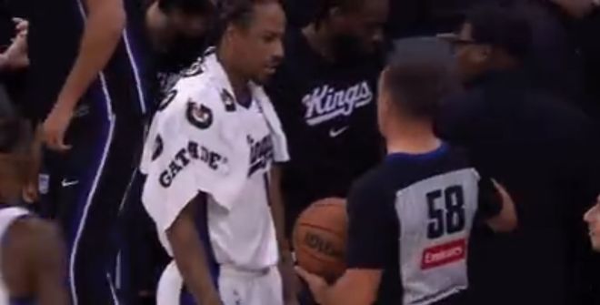 德罗赞遭勇士新秀理查德一巴掌拍在脸上,裁判却没有任何吹罚,德罗赞也是生气找裁判理论。