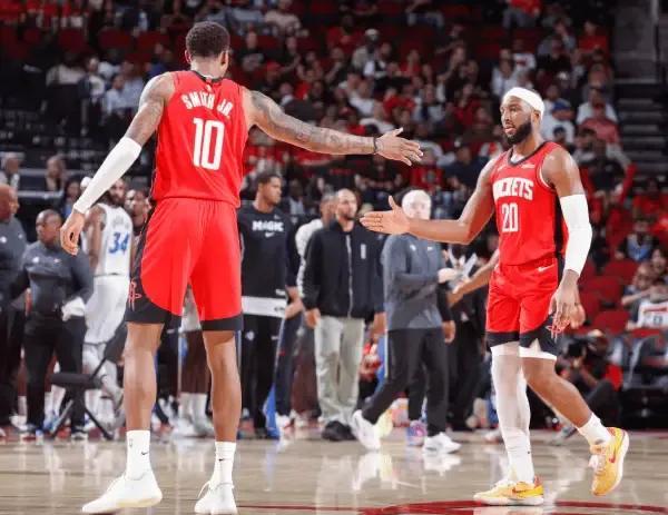更让人兴奋的是,火箭的未来拼图,似乎正在以肉眼可见的速度清晰起来。我们曾经以为,火箭的建队核心是申京+阿门汤普森的内外双核。申京是低位发动机+策应中枢,阿门是攻防一体的锋线大锁,外加史密斯和伊森的运动能力,这套阵容已经足够有想象力。但现在看来,我们都低估了谢泼德的上限,也低估了乌度卡的培养思路。